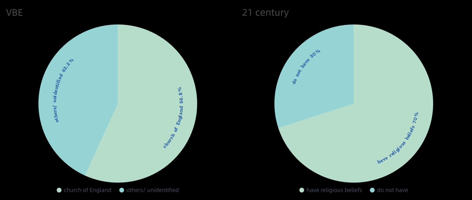 It is estimated that around 1870, 57 per cent of nurses in the existing data were religious. It should be noted that this figure is only for those who volunteered their religious beliefs, and about two-thirds did not disclose their religion, so there is inevitably a degree of bias in the data.